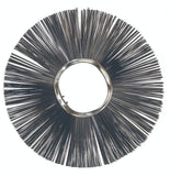 Black bristles are made of polypropylene with an inner metal ring. Non-corrosive material suitable for all weather conditions. The convoluted or wavy rim allows for evenly spaced bristles across the sweeper. Place every other wafer from a 12 o'clock to a 6 o'clock position on the wafer core in order to create a space between each wafer. You can make the broom denser by decreasing the space between the wafers by reducing the distance of the two clock positions. The Inside Diameter [ID] X Outside Diameter [OD] measurement will help you find the correct size bristle for your broom.