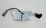 Open the door from the inside with the front door latch assembly for skid steer loaders. Includes a door sensor to ensure the door is latched properly, which connects to the door harness and the door striker. To check for correct operation, open the door. The lift and tilt valve light will flash, an audible tone will sound, and the message DOOR will appear in the display. Close the door, and the lift and tilt valve light will go out and the display will return to machine hours.